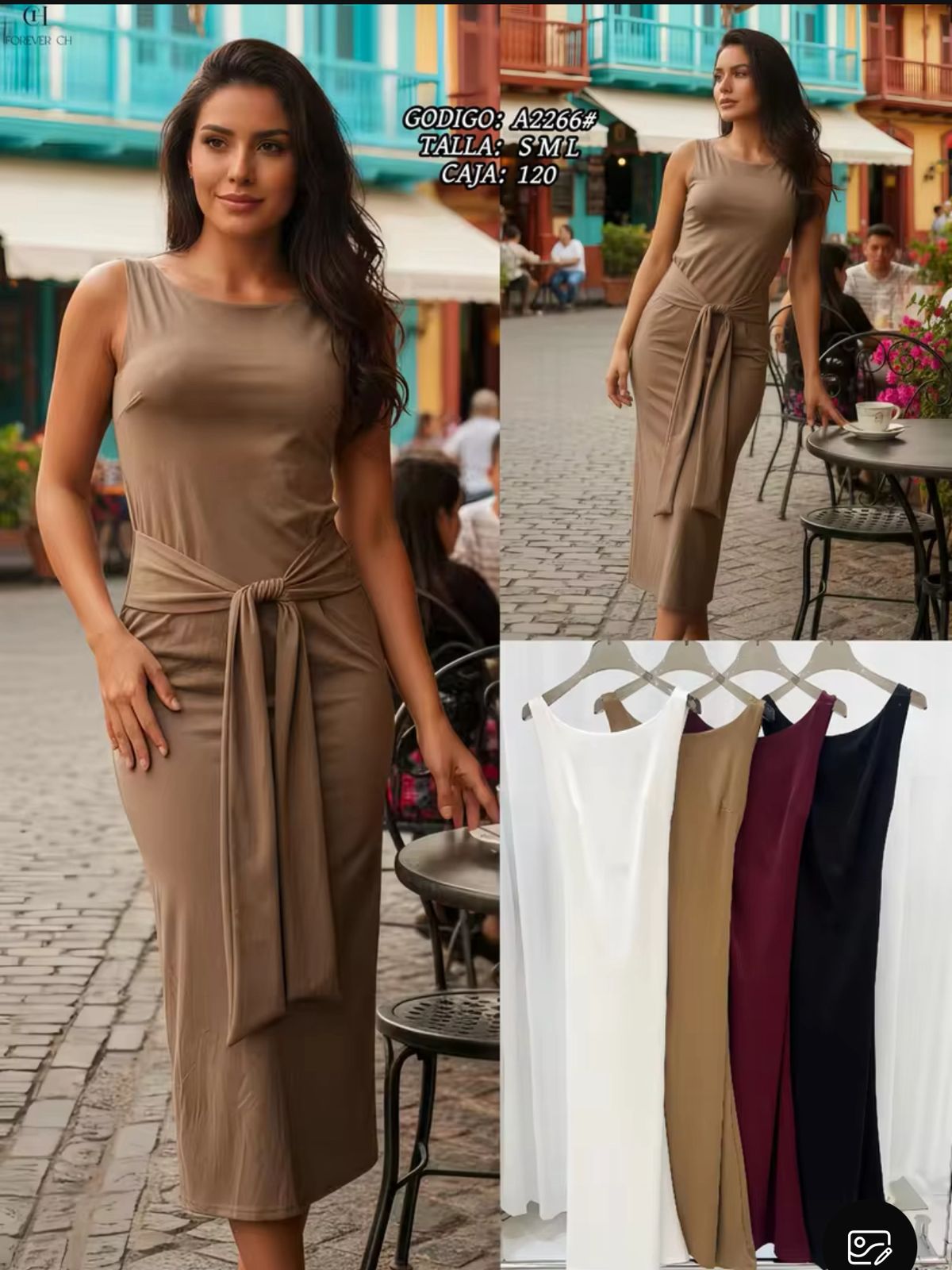 Vestido midi sin mangas con lazo en la cintura-A2266