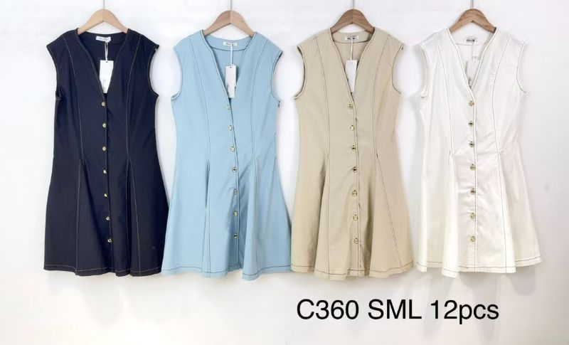 Vestido sin mangas con cuello V y botones frontales-C360