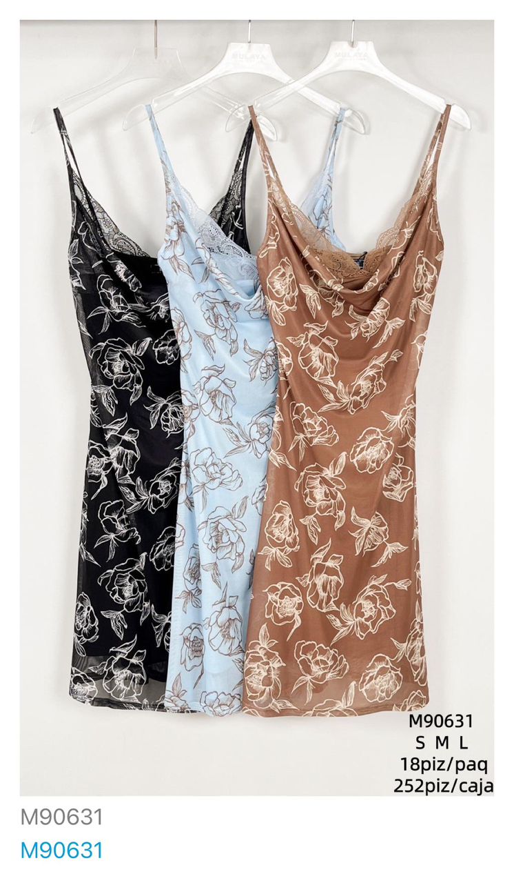 Vestido tipo lencero con estampado floral-M90631