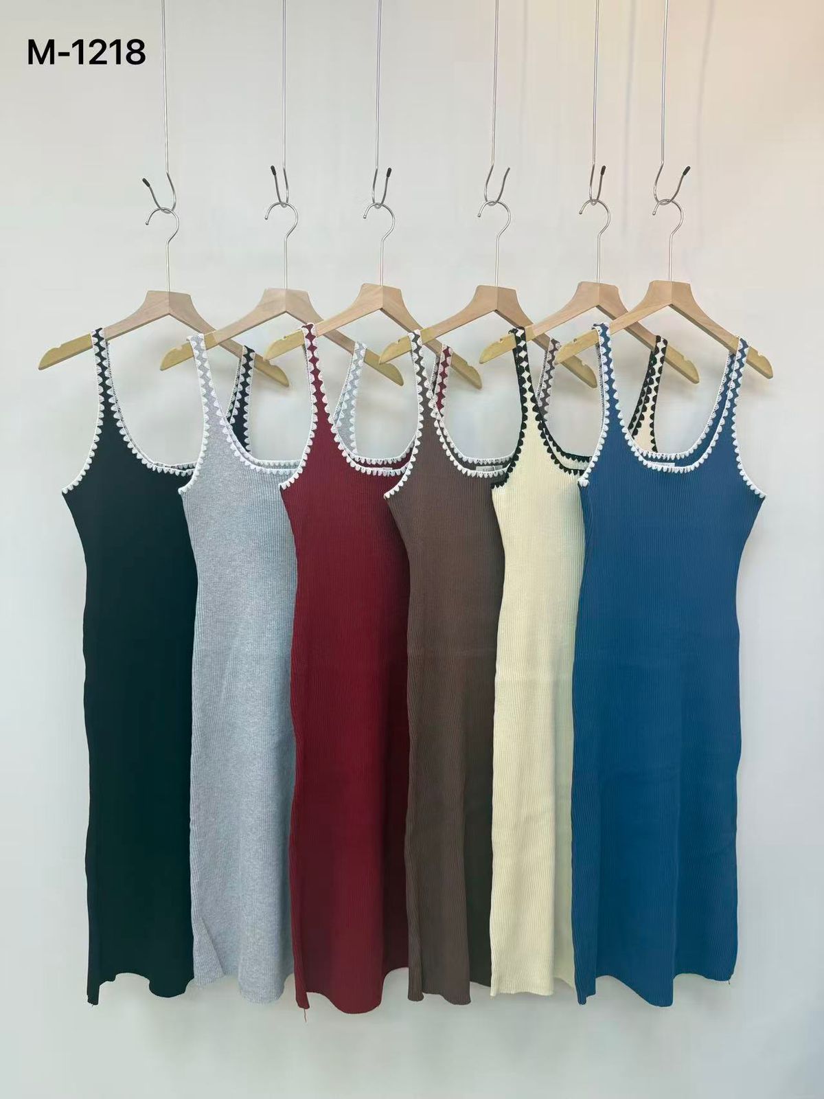 Vestidos de tirantes acanalados con ribete-M-1218