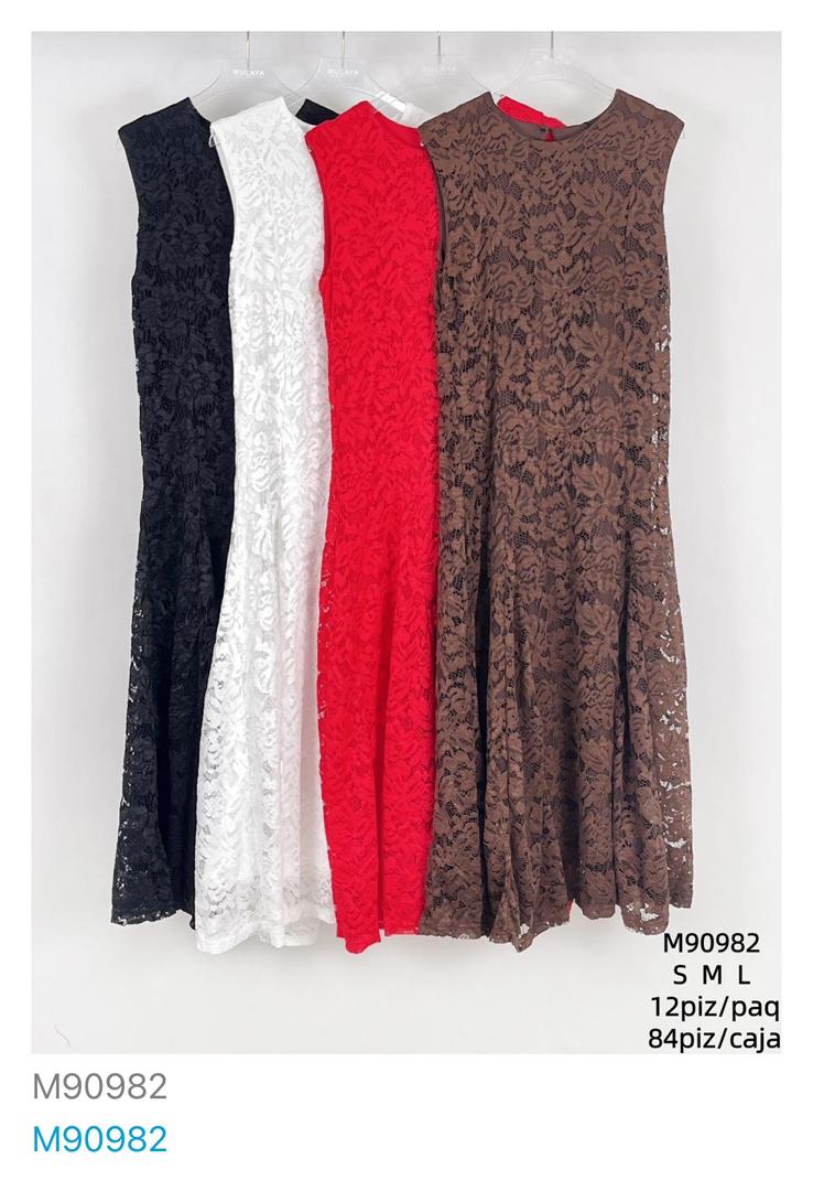 Vestidos largos de encaje sin mangas-M90982